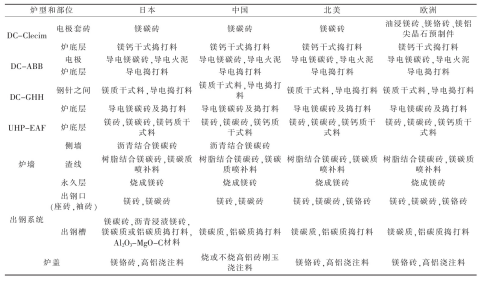 詳情摘 要:由三根電極的普通交流電弧爐發(fā)展為超高功率(UHP)及一根電極的直流(DC)電弧爐,爐體結構有一些改變。針對各部位的損毀因素,內(nèi)襯用的耐火材料也有所發(fā)展。例如普通電弧爐的爐頂用高鋁磚、爐墻鎂磚砌筑,而UHP及DC電弧爐采用大面積水冷爐頂、爐墻,爐頂三角區(qū)采用剛玉澆注料或預制件,爐墻用鎂碳磚,蝕損嚴重部位采用噴補作業(yè)。還介紹了日本等一些國家DC和UHP的各種爐型用耐火材料。煉鋼電弧爐是以電極端部和爐料之間發(fā)生的電弧為熱能進行煉鋼的設備。電弧爐以廢鋼為爐料直接煉鋼,與礦石煉鐵后再煉鋼相比,基建投資少,節(jié)能60%、節(jié)水40%、減少廢氣排放86%、減少廢渣97%[1]。交流電弧爐歷史悠久,交流電是通過三根石墨電極輸入爐內(nèi),在電極下端與金屬料之間產(chǎn)生電弧,利用電弧高溫直接加熱爐料,使煉鋼過程得以進行。供電功率越高,爐料熔化速度越快,降低能量消耗越多,因此出現(xiàn)超高功率(UHP)電弧爐。在超高功率的基礎上發(fā)展了直流(DC)電弧爐煉鋼。直流電弧爐是以一根石墨電極的端點為陰極,爐底為陽極,石墨電極位于爐膛中心部位。與UHP相比設備結構簡單,建設費用低,熔池中的電流與熱量分布比較均勻,不存在過熱區(qū)域,因此耐火材料損耗比較小、節(jié)能且噪音小等。目前,煉鋼電弧爐向大型化、控制自動化方向發(fā)展。我國的電弧爐主要用來生產(chǎn)合金鋼。煉鋼水平與工業(yè)發(fā)達國家相比差距較大,如2015年我國電爐鋼占粗鋼總產(chǎn)量的6.1%,2020年有所提高,但也不超過10%,與世界平均水平的30%相比還有較大差距。我國已經(jīng)引進先進水平的UHP和DC電弧爐,隨著經(jīng)濟發(fā)展,工業(yè)化程度提高,必然伴以廢鋼資源數(shù)量增加,同時發(fā)展鐵礦石直接還原煉鐵技術,代替廢鋼,增加電弧爐煉鋼的爐料,還有核電的發(fā)展,使電弧爐煉鋼有了物質(zhì)保證。電弧爐的內(nèi)襯是耐火材料構成的,隨著UHP和DC技術的發(fā)展,需要新型優(yōu)質(zhì)耐火材料與之相配套。有人說[2]:沒有優(yōu)質(zhì)爐襯、爐底耐火材料支持長壽爐齡,超高功率電弧爐就無法發(fā)揮高效生產(chǎn)的優(yōu)勢。爐底耐火材料是直流電弧爐得以實現(xiàn)的必要條件,反映了煉鋼與耐火材料技術的互相影響,互為依存,在電弧爐煉鋼系統(tǒng)優(yōu)化生產(chǎn)中有不可分割的作用。1 電弧爐的結構變化傳統(tǒng)的電弧爐由爐頂(又稱爐蓋)、爐墻、爐坡、爐底和出鋼槽構成,全部用耐火材料構筑,外包鋼制爐殼。爐墻一側設有爐門,另一側為出鋼口,并與出鋼槽相連。而UHP和DC電弧爐采用偏心爐底出鋼,使爐體由傾動式改為固定式,爐底有供氣攪拌設置,爐頂安裝氧-燃料燒嘴,在爐底偏心位置設置出鋼口,代替出鋼槽。由于取消了傾動設備,擴大了水冷面積,緩和了爐襯的損毀,適當降低了出鋼溫度,并縮短了出鋼時間,從而降低生產(chǎn)成本。爐墻采用鑲砌水冷箱式水冷套措施,其內(nèi)表面噴涂一層耐火涂料,使其掛渣形成保護層,可有效降低耐火材料消耗,但電耗可能增加。國外有的電弧爐功率達1 000 kV·A/t以上,爐墻壽命達2 000爐次以上,水冷爐蓋壽命達4 000爐次,降低耐火材料消耗60%以上。2 耐火材料內(nèi)襯的損毀因素電弧爐內(nèi)襯的耐火材料長期處于高溫、熔渣侵蝕和急熱急冷狀態(tài)下,工作條件極其惡劣。在煉鋼的熔化期和氧化期,不致于因高溫損壞爐襯,但在還原期的鋼液溫度相當高,又受電弧直接輻射(有時溫度達4 000℃以上),爐襯很容易造成熔融損壞。出完鋼裝料時,爐襯溫度突然下降,裝完料開始送電,溫度又逐漸升高,這種急冷急熱是爐襯剝落的直接原因,主要是爐頂容易剝落。耐火材料內(nèi)襯損毀的主要因素包括[3]:(1)化學侵蝕。FeO或渣中SiO2與耐火材料中的CaO、MgO之間的化學反應,使爐襯變?yōu)槿墼鴮е聯(lián)p毀。(2)耐火材料內(nèi)襯中的碳成分被含氧成分(如FeO、O2、MgO等)氧化,導致耐火材料脫碳而損毀。(3)沖刷和機械沖擊。鋼水或熔渣流過耐火材料表面,以物理性磨損或沖刷爐襯,而導致內(nèi)襯損毀;在出鋼口、渣線、電極口或排氣口平臺等沖刷嚴重,廢鋼等爐料吊入往往撞擊爐襯而損毀。(4)水化。在生產(chǎn)過程中,往往會出現(xiàn)爐頂或爐墻漏水或滲水,還有水蒸氣,與堿性耐火材料中的MgO、CaO進行水化反應,使內(nèi)襯損毀。3 電弧爐用耐火材料根據(jù)電弧爐的結構,由于各部位承受的熱負荷大小不同,與熔渣、鋼水接觸作用及機械損壞程度存在差異,不同部位必須采用不同的耐火材料[4]。3.1 爐頂(蓋)我國中小電弧爐普遍采用燒成或不燒高鋁磚,局部用高鋁質(zhì)或剛玉質(zhì)不定形耐火材料預制件。大型超高功率電弧爐和直流電弧爐采用水冷技術,除三角區(qū)外,爐頂耐火材料不是關鍵。三角區(qū)由于強烈熱震及電極熱輻射苛刻,國外普遍采用剛玉質(zhì)或鋁鉻質(zhì)搗打料,我國一般用高鋁質(zhì)或剛玉質(zhì)搗打料。天津鋼管集團公司150 t超高功率電弧爐,爐頂三角部分(三個電極孔周圍)采用鉻剛玉質(zhì)澆注料預制件,預先烘烤,現(xiàn)場直接使用,并解決了電極孔定位的難題。還針對氧槍上部損毀較快問題,在該區(qū)域采取局部加厚處理,使爐頂各部分損毀速度基本一致,最高壽命達676爐次。3.2 爐墻(壁)分為一般爐墻、渣線區(qū)和臨近電弧的熱點
